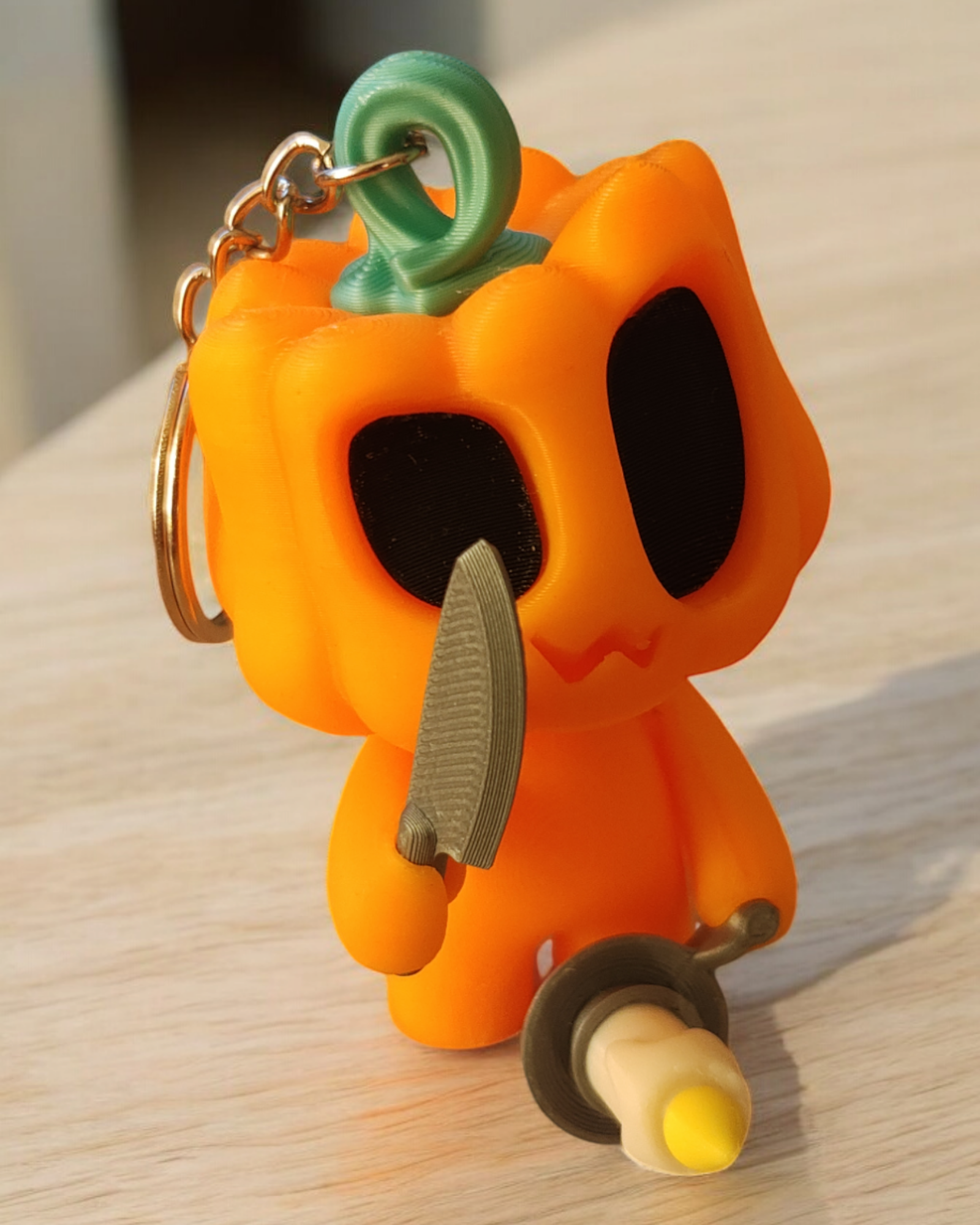 Este adorable adorno es perfecto para darle un toque festivo a tu hogar durante la temporada de Halloween. Con un diseño amigable y detalles vibrantes, esta figura no solo es un elemento decorativo, sino que también es ideal para coleccionistas. Ademas, podes pedirla como llaveropara llevarla a todas partes!