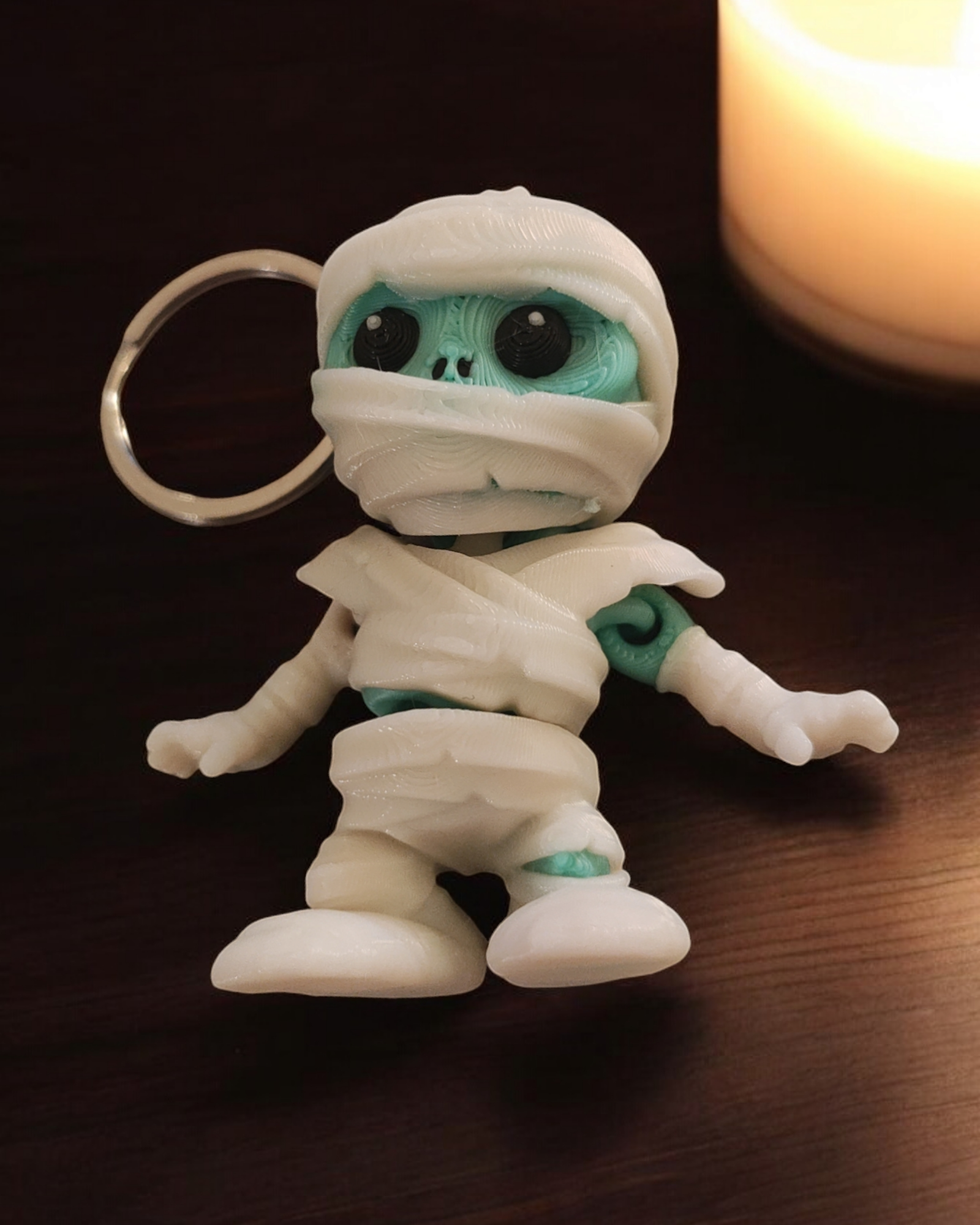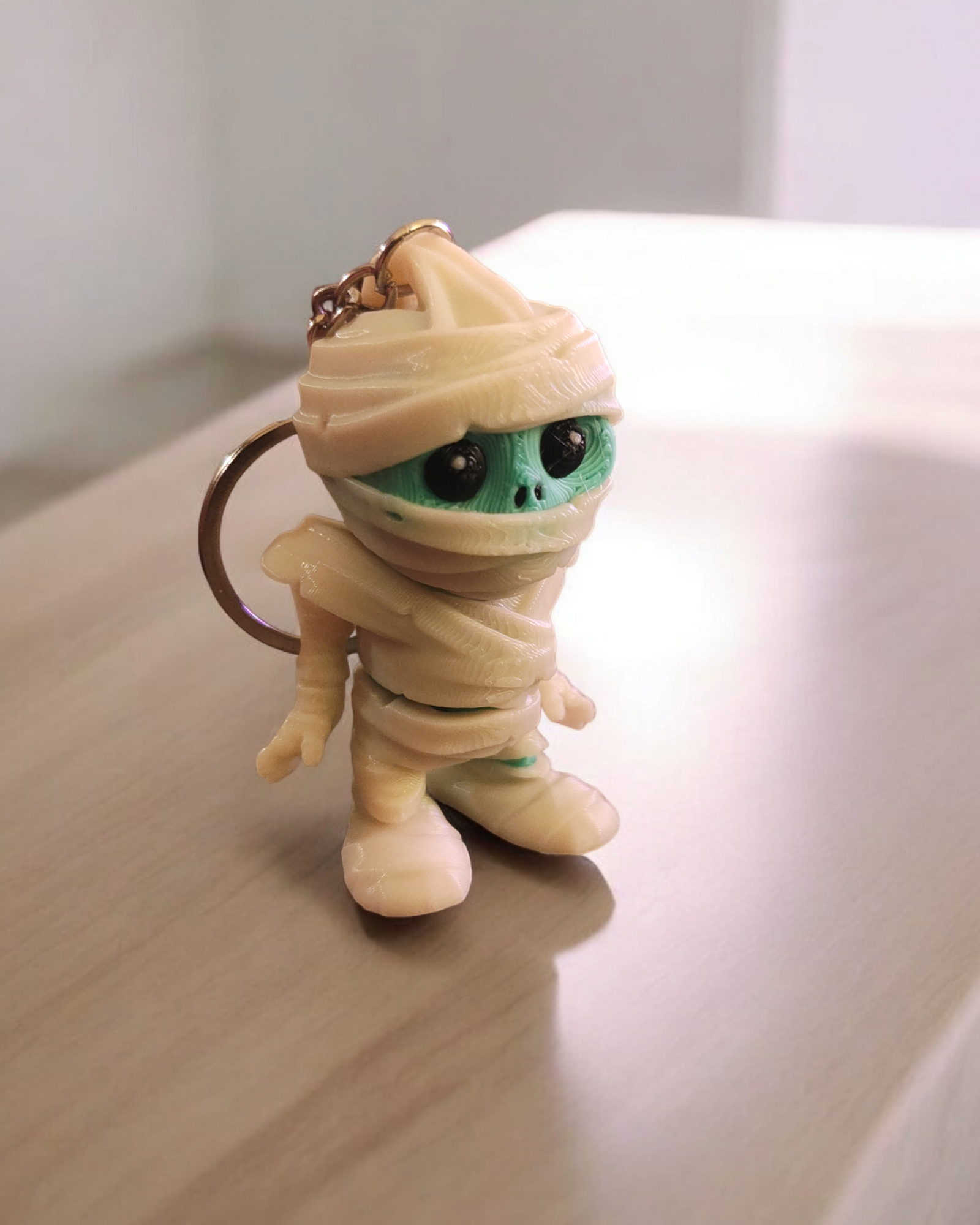 ¡Esta momia cobra vida! Lleva contigo este llavero articulado que se mueve. El toque espeluznante y divertido perfecto para tus llaves.